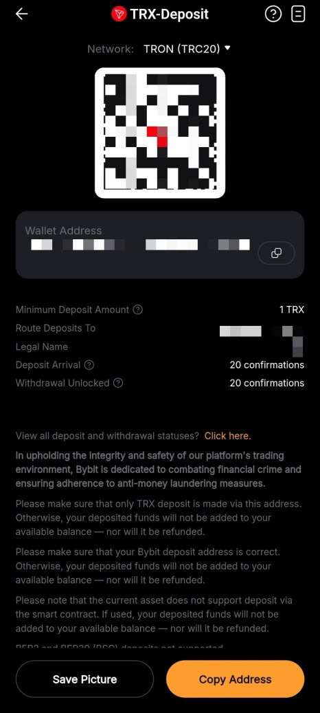 앱 화면 하단의 Asset 메뉴로 들어가 Deposit을 클릭하면 Deposit Crypto 메뉴를 선택합니다.